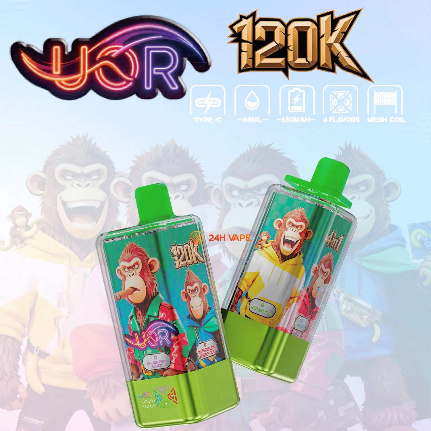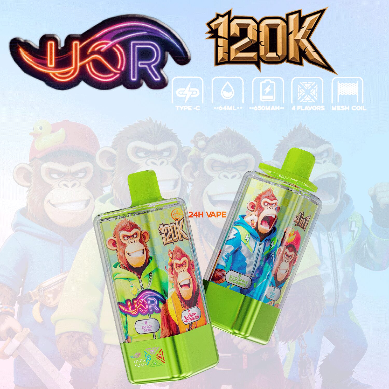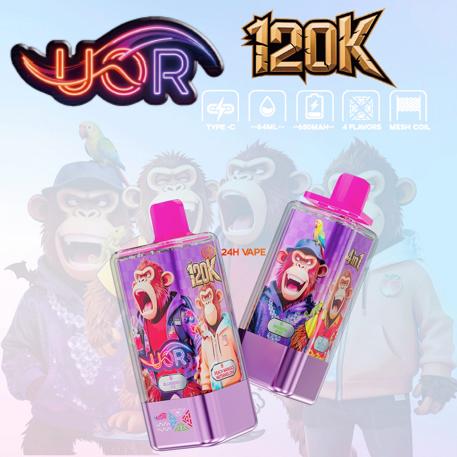 UOR 120000 120K Puffs 4 in 1 Flavors Newest Original Rechargeable LED Display Disposable Vape